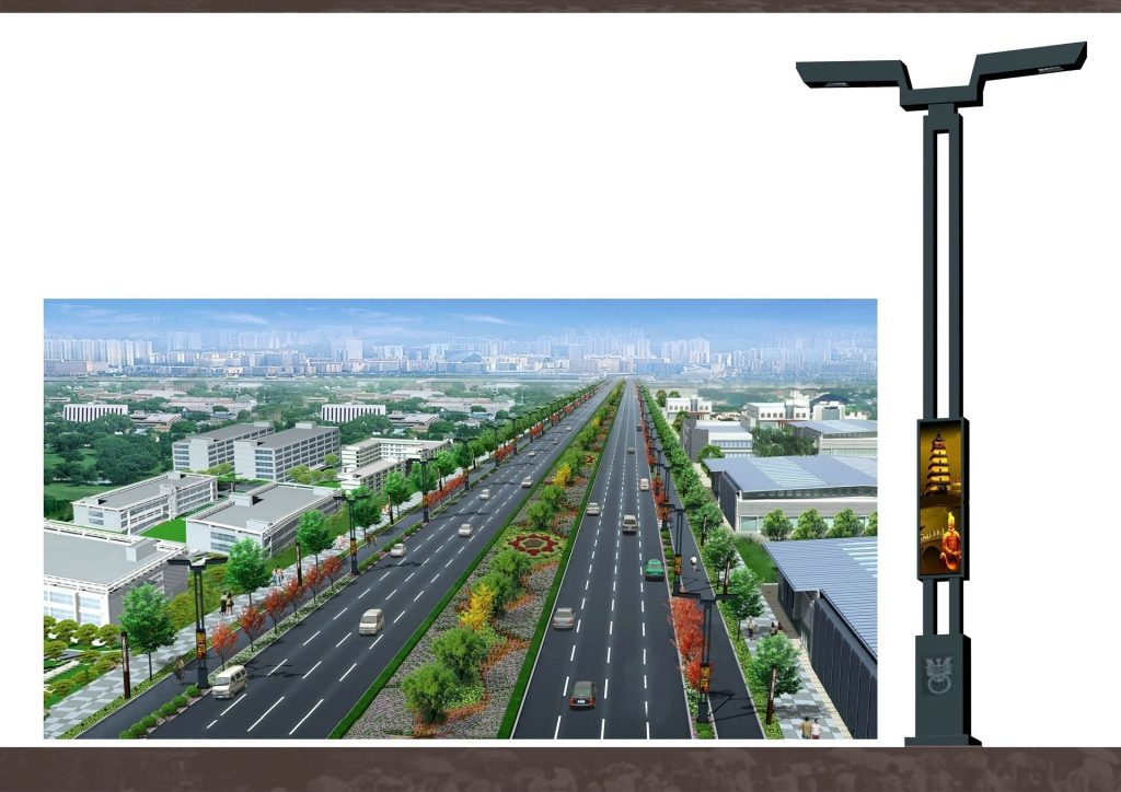 This LED street lamp integrates traditional oriental architectural geometry with modern LED technology and multimedia display. Its distinctive Y-shaped lamp arm, hollow structure, and integrated cultural display screen merge efficient LED illumination with regional historical expression. It is a design-driven fixture that balances functional lighting, artistic aesthetics, and cultural communication, making it a creative fusion of tradition and modernity.