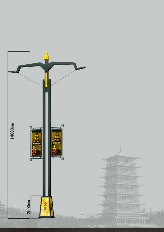 | Dimensions | – Total Height: 10m (Customizable)- Lamp Post Width: 200mm (Vertical Beam); Bow Arm Length: 1500mm- Billboard Size: 600mm (W) × 1000mm (H) Each |