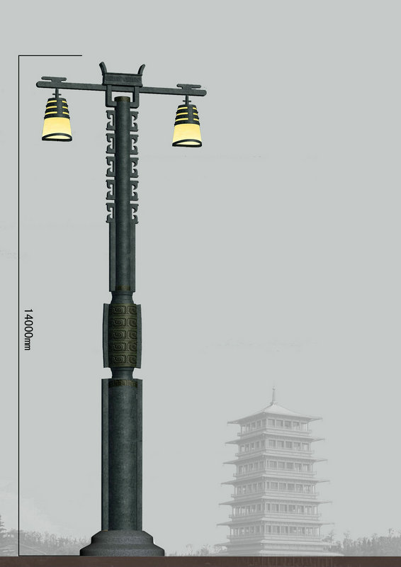 This LED street lamp integrates ancient oriental bronze-ware patterns and architectural details with state-of-the-art LED technology, creating a design-centric lighting fixture. The intricate retro carvings and symmetrical dual-lamp structure draw from traditional craftsmanship, while LED modules ensure energy-efficient and aesthetic illumination. It redefines urban lighting as a fusion of historical artistry and modern innovation, serving as both a high-performance LED solution and a cultural artistic installation.