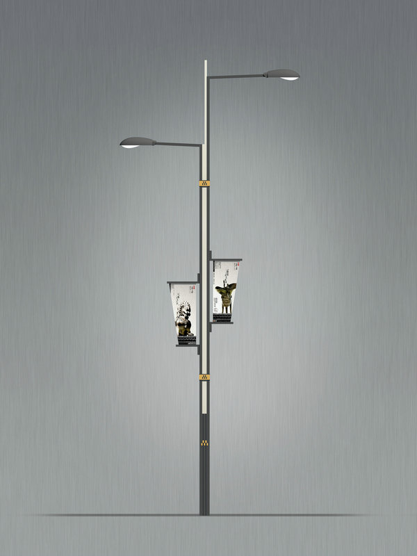This LED street lamp integrates a modern minimalist structural design with cultural display elements, featuring dual-arm LED fixtures and customizable poster slots. It merges functional illumination with artistic design, where sleek lines and the integration of cultural posters make it a design-driven LED fixture that balances urban practicality and aesthetic expression.