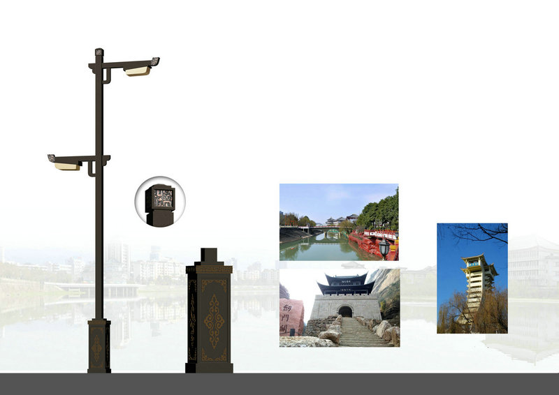 This LED street lamp integrates ancient oriental gate tower architectural elements (intricate base patterns, traditional bracket structures) with advanced LED technology, creating a design-centric lighting fixture. The detailed carvings and symmetrical dual-lamp layout draw from classical heritage, while LED modules ensure energy-efficient illumination. It redefines urban lighting as a blend of historical artistry and modern innovation, serving as both a high-performance LED solution and a cultural artistic installation.