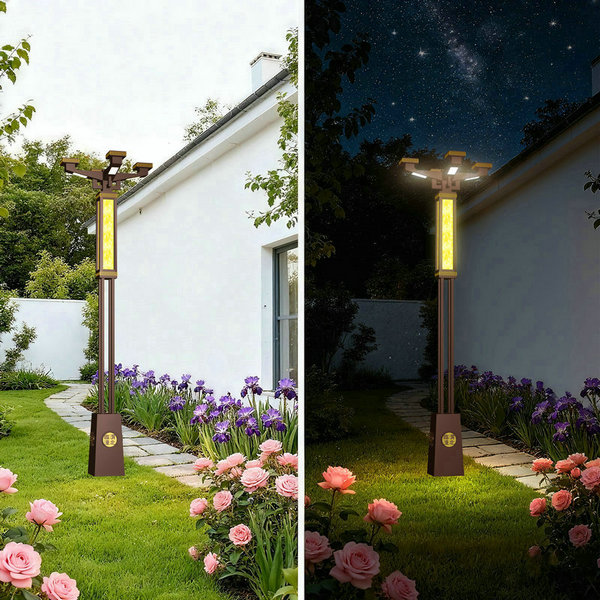 This courtyard lamp draws inspiration from the “dougong” (bracket set) structure in traditional Chinese architecture, integrating this classic element with modern LED lighting technology. It is a design-driven LED luminaire that combines the architectural artistry of dougong, Huiwen patterns, and cloud stone lampshades with efficient LED illumination. While preserving the historical charm of traditional Chinese architecture, it achieves both decorative and functional lighting, serving as a cultural and visually striking piece in outdoor spaces.