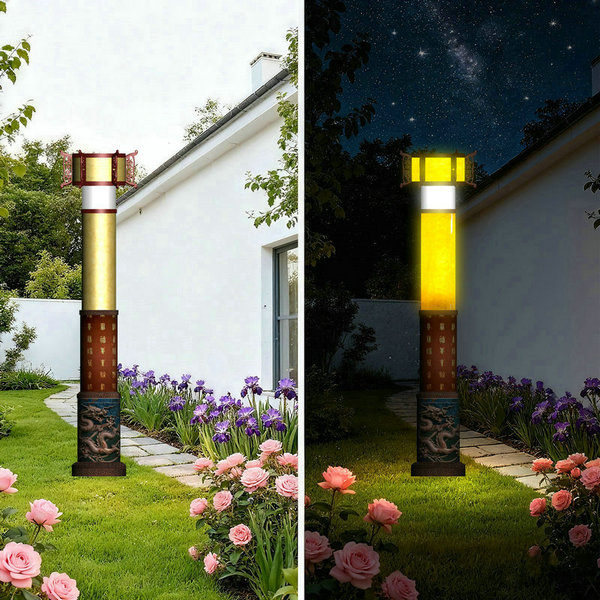 This courtyard lamp integrates traditional Chinese elements like dragon patterns and auspicious inscriptions with modern LED lighting technology. It is a design-driven LED luminaire that combines classical craftsmanship (such as carving and ornamentation) with contemporary lighting functionality. While inheriting the solemn and elegant charm of Chinese culture, it achieves efficient and artistic illumination through LED, serving as a cultural and visual highlight in outdoor spaces.