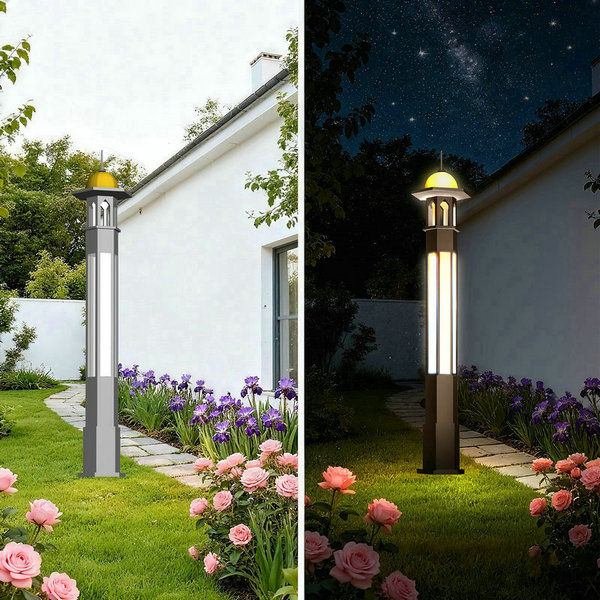 This courtyard lamp is custom-designed by integrating Islamic architectural styles, featuring elements like the golden dome and arched openings. It is a design-driven LED luminaire that combines the solemn beauty of Islamic architecture with efficient LED illumination. Through full-body lighting and LED projection, it creates a magnificent landscape effect while delivering functional lighting, making it a visually striking piece in outdoor spaces that merges cultural characteristics and modern design.
