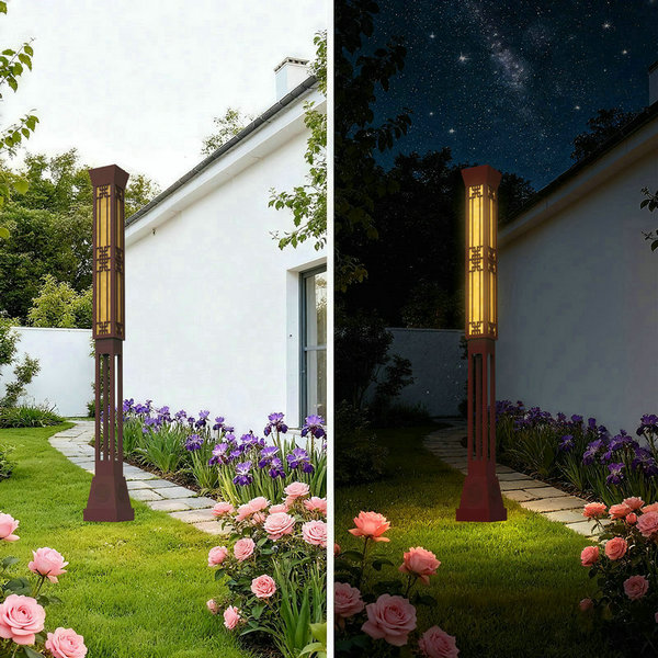 This courtyard lamp integrates traditional Chinese lattice patterns and symmetrical architectural elements with modern LED lighting technology. It is a design-driven LED luminaire that merges the classic elegance of Chinese craftsmanship with contemporary lighting functionality. While preserving the cultural charm of traditional lattice designs, it achieves artistic and efficient illumination through LED, serving as a refined cultural and visual highlight in outdoor spaces.