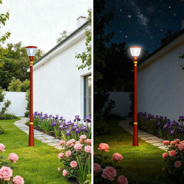 This courtyard lamp integrates traditional Chinese auspicious elements (such as red color symbolizing prosperity and Huiwen patterns) with modern LED lighting technology. It is a design-driven LED luminaire that combines the cultural connotation of Chinese traditional aesthetics with efficient illumination. Featuring a red color scheme, golden accents, and classic Huiwen decorations, it not only inherits the auspicious cultural charm but also delivers high-performance lighting through LED sources, serving as a stylish and culturally rich highlight in outdoor spaces.